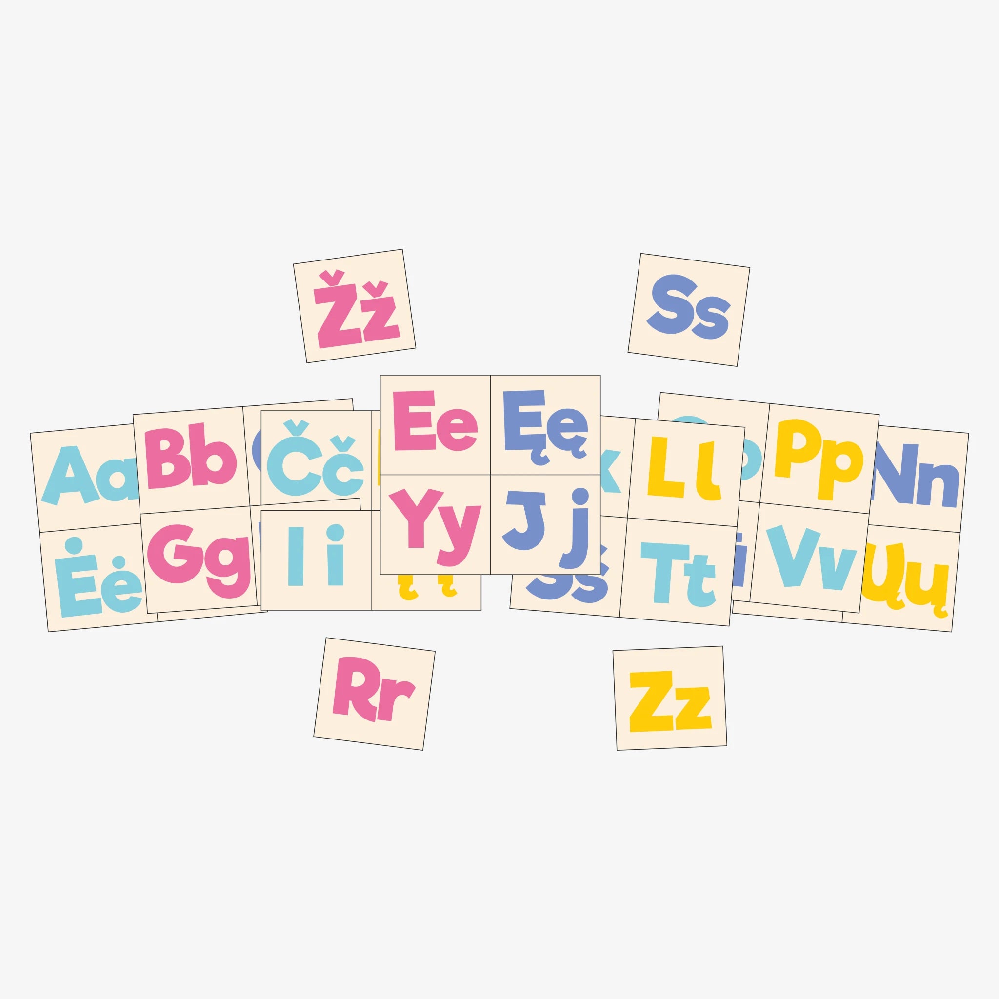 Padėkite vaikui lengviau pažinti lietuviškas raides su spalvingu magnetinių kortelių rinkiniu. Rinkinyje – 32 raidės (7.5 x 6.8 cm dydžio), atitinkančios visas lietuvių kalbos abėcėlės raides, įskaitant specifines: Ą, Č, Ę, Ė, Į, Š, Ų, Ū, Ž.