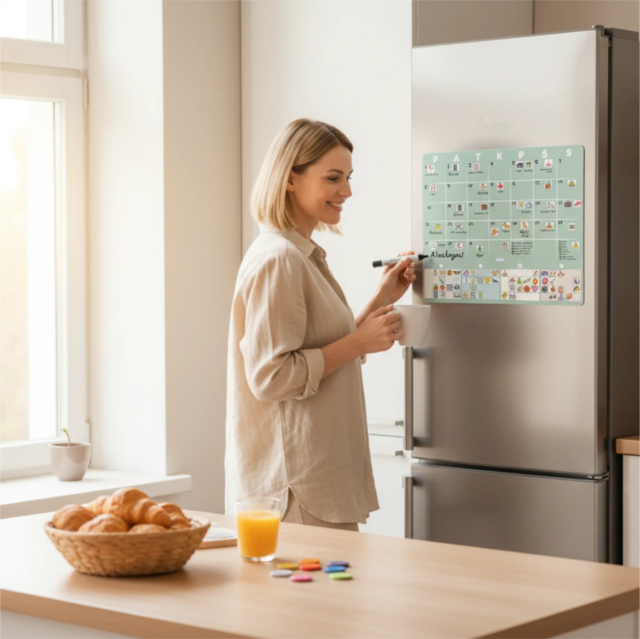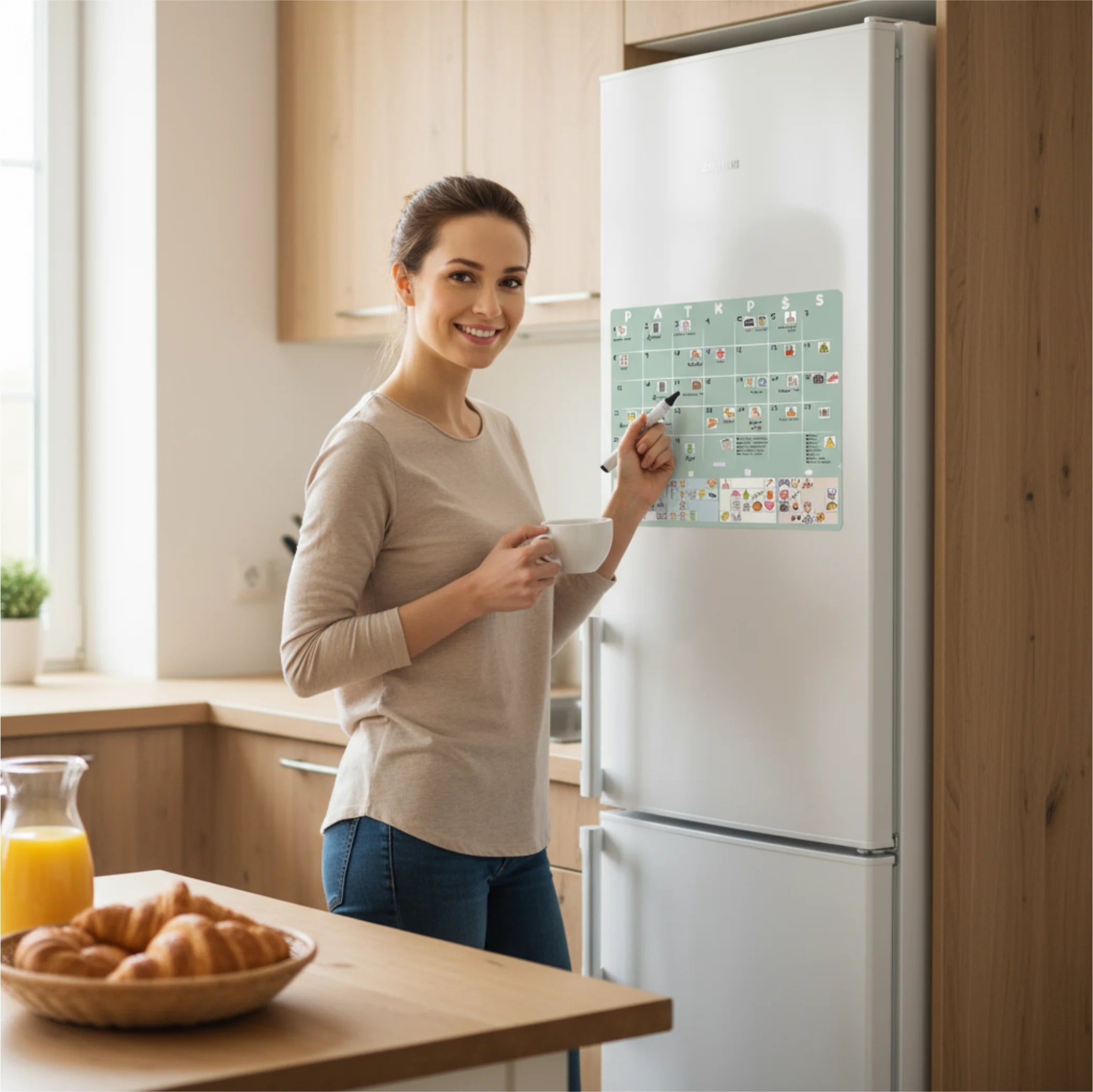 Sukurkite daugiau tvarkos ir ramybės savo namuose su MAGO šeimos planavimo kalendoriumi – rašomu, daugkartiniu ir magnetiniu mėnesio planuotoju, tvirtinamu tiesiai ant sienos ar šaldytuvo.