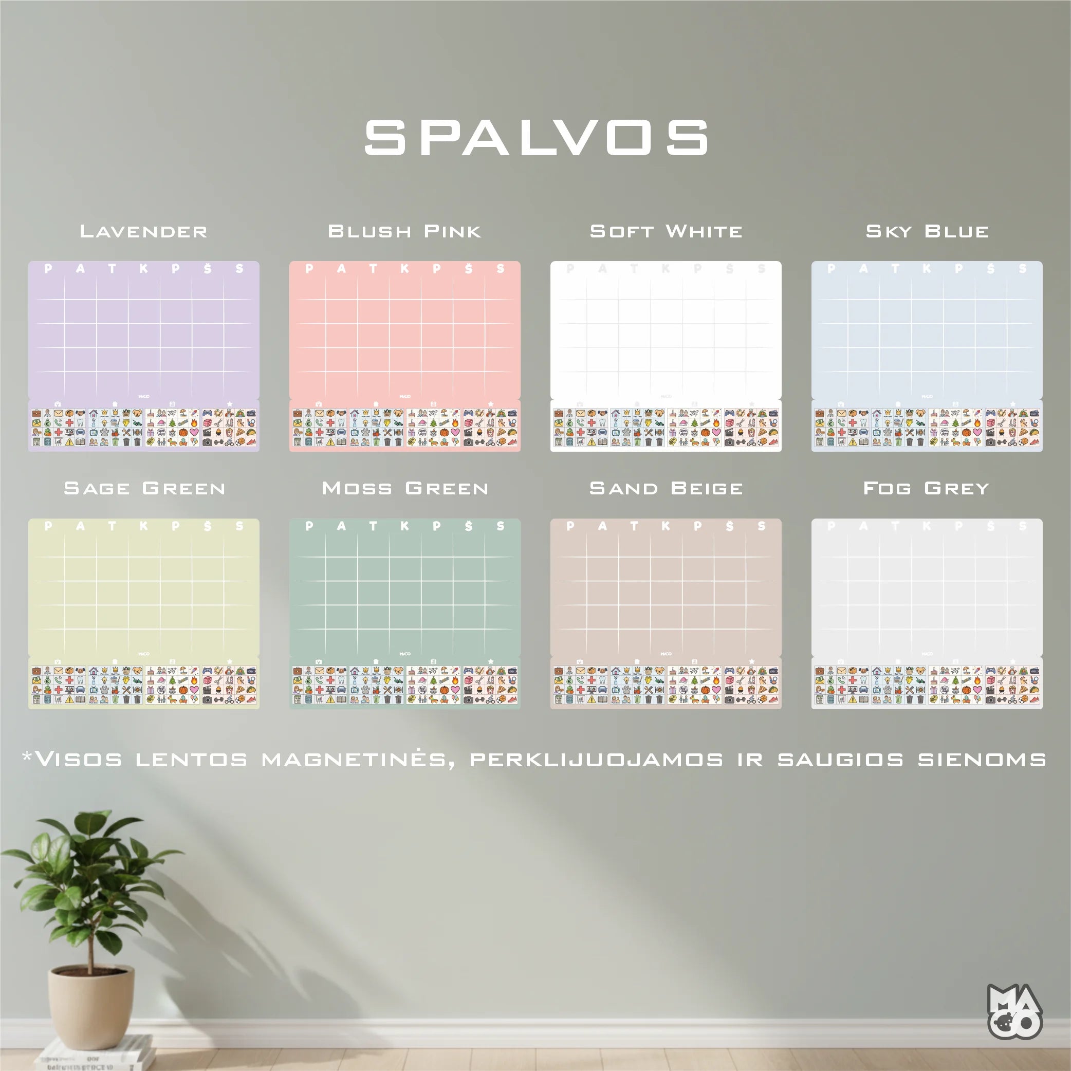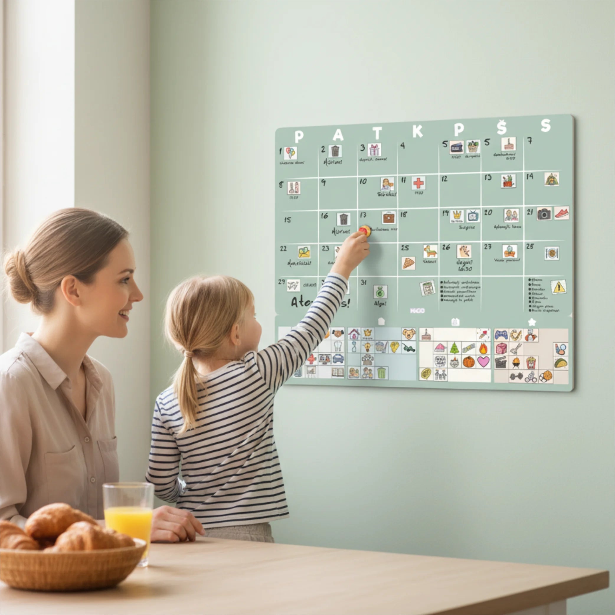 MAGO šeimos planavimo kalendorius – magnetinis mėnesio planuotojas ant sienos (rašomas, daugkartinis)
